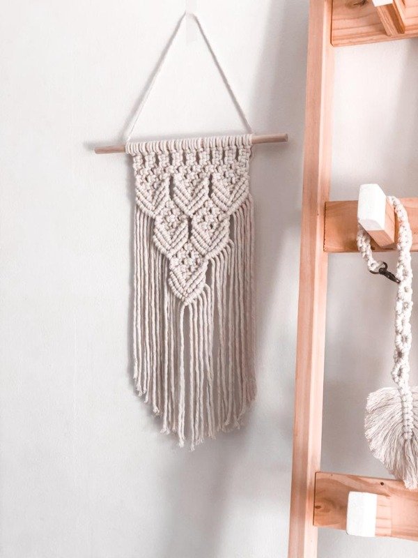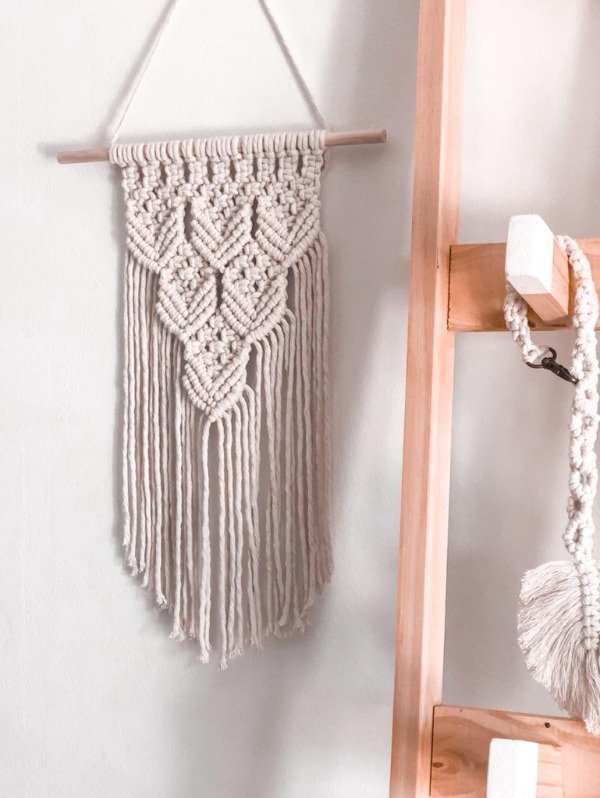 Está compuesto por una variedad de nudos realizados con técnica macramé.