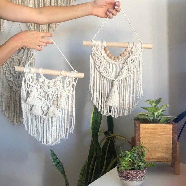 Está compuesto por una variedad de nudos realizados con técnica macramé.