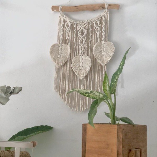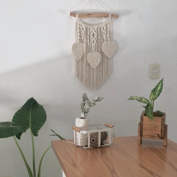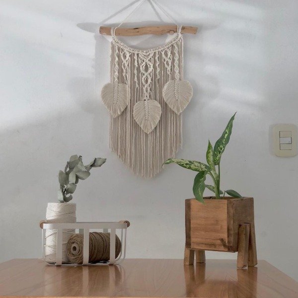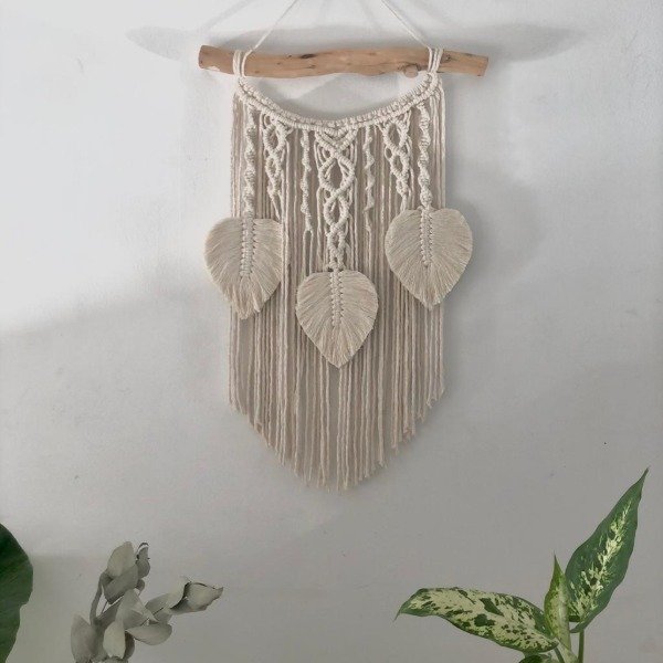 Está compuesto por una variedad de nudos realizados con técnica macramé.