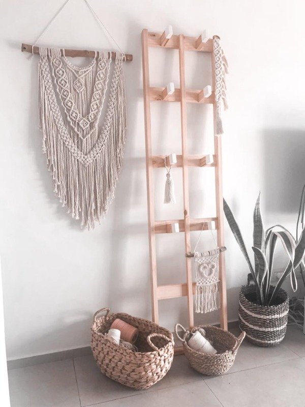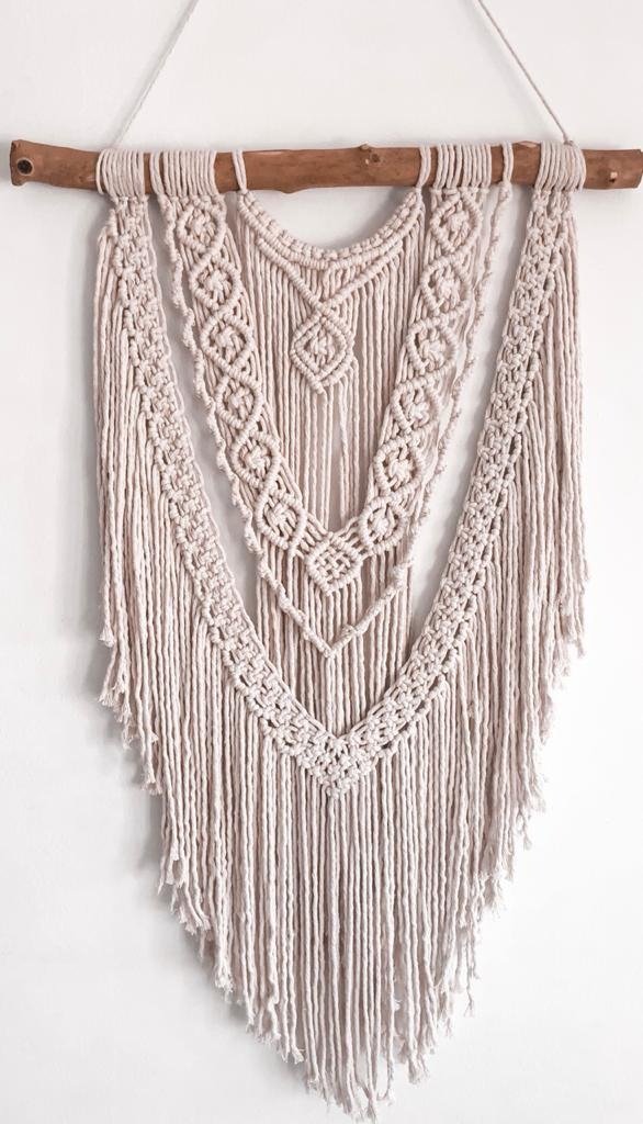 Está compuesto por una variedad de nudos realizados con técnica macramé.