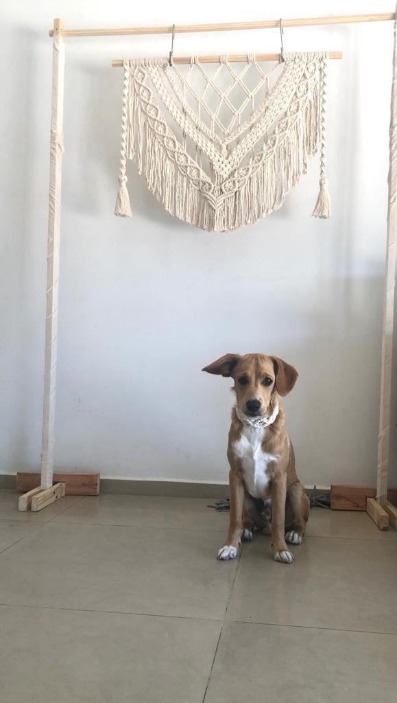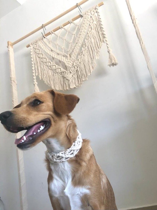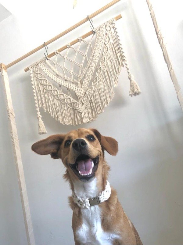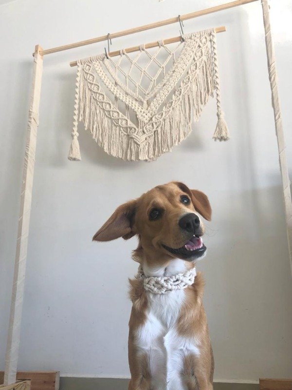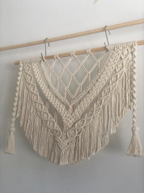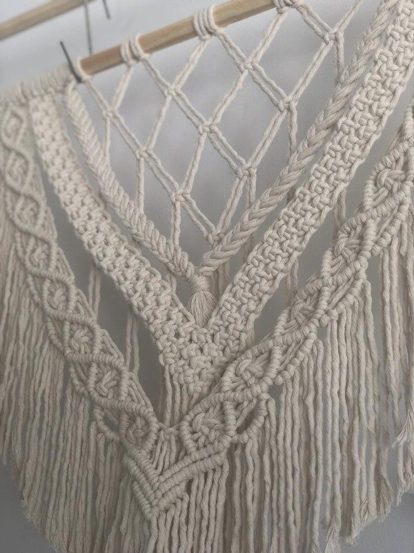 Está compuesto por una variedad de nudos realizados con técnica macramé.