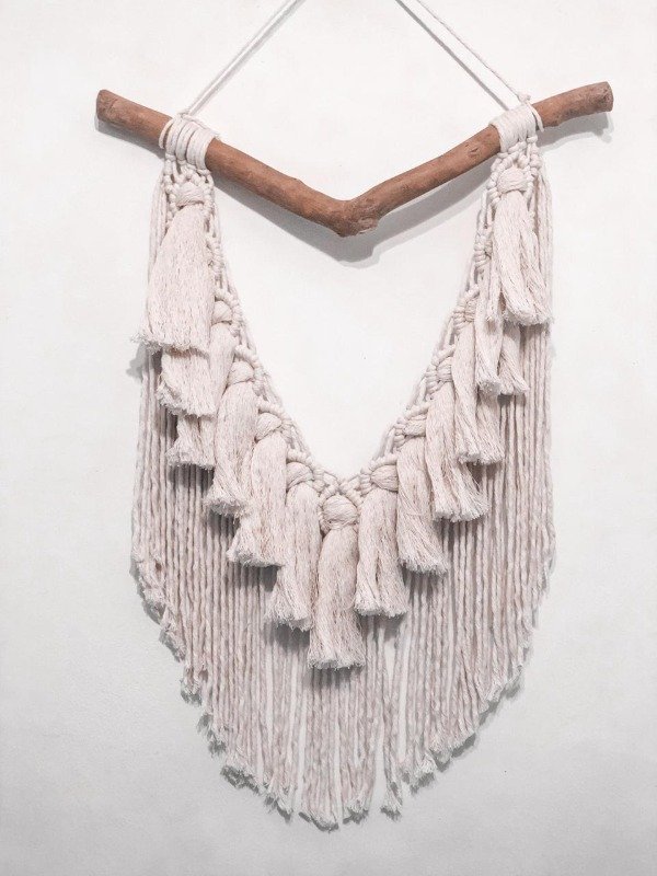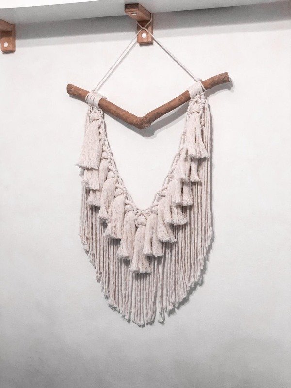 Está compuesto por una variedad de nudos realizados con técnica macramé.