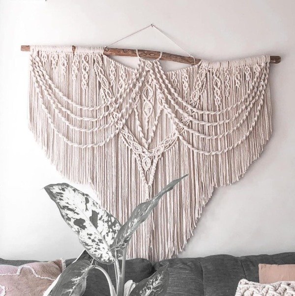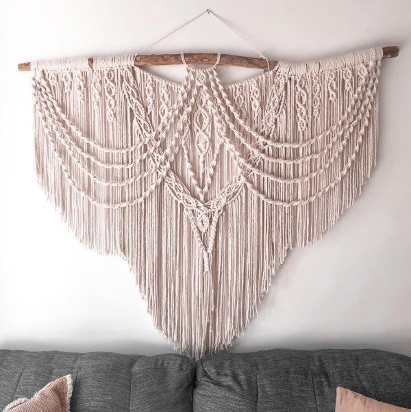 Está compuesto por una variedad de nudos realizados con técnica macramé.