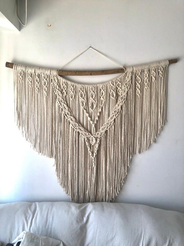 Está compuesto por una variedad de nudos realizados con técnica macramé.